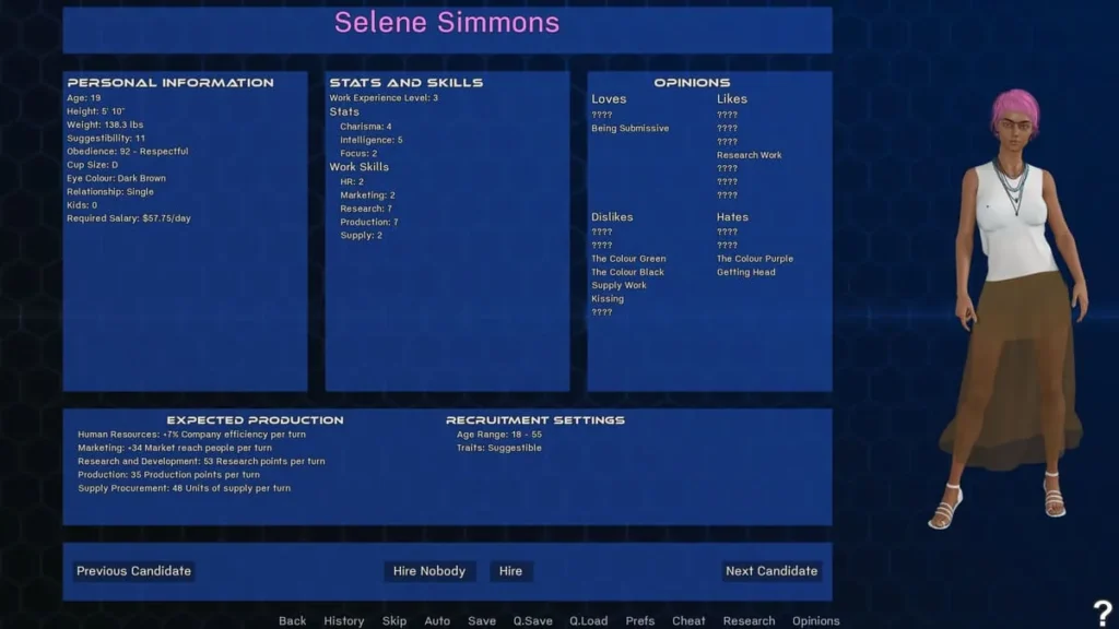 - Building Relationships: Interacting with your test subjects through dialogue and actions, which directly influences their stats and storylines.