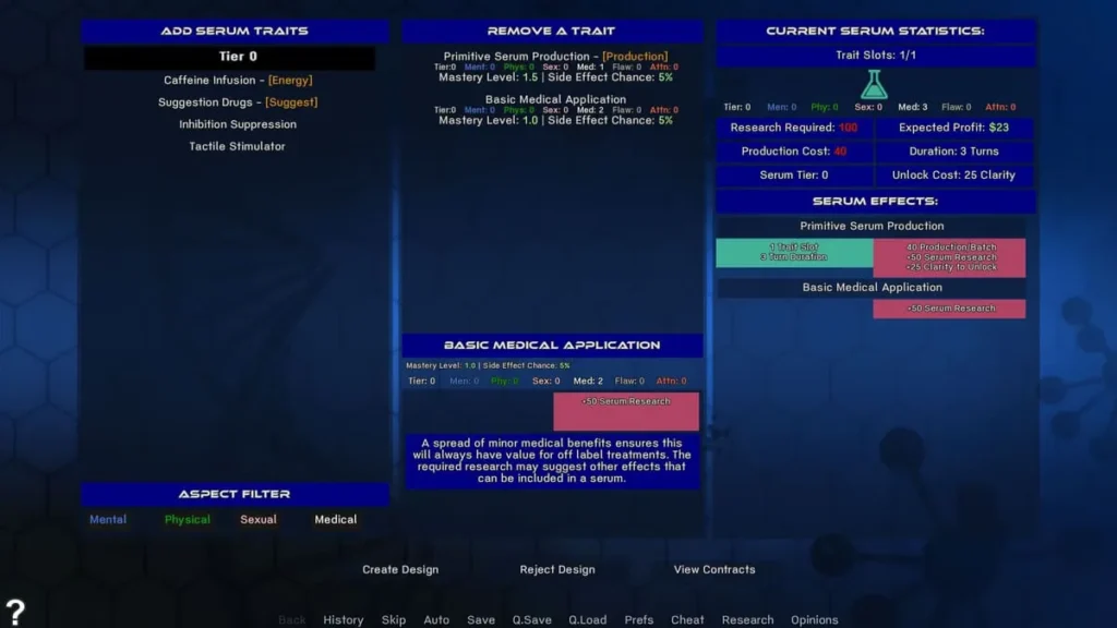 | Serum Crafting | The process of mixing components to create temporary or permanent character modifications. | Drives the core loop of experimentation and provides a tangible sense of power and discovery. |