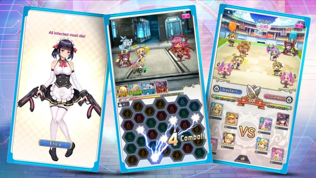As you progress, the mobile RPG battle mechanics scale beautifully. Early battles teach you the basics. Later, you’ll face enemies who poison your tiles, change their color, or even lock entire rows, forcing you to think several steps ahead with your Project QT combo system strategies. Campaign bosses often have specific mechanics that require tailored teams and precise ultimate timing to overcome.