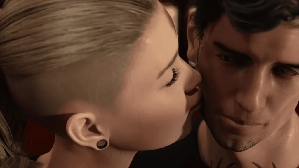 The real magic often happens in the smallest gestures. A lingering touch, a character brushing hair from their face, or the way two people lean into each other during a conversation feels meticulously crafted. And then there are the kisses. I’m not exaggerating when I say they are some of the most well-animated, emotionally charged kisses I’ve seen in any Hellcat Lounge AVN discussion. They feel slow, intentional, and packed with subtext, rather than just being a mechanical step towards something else.